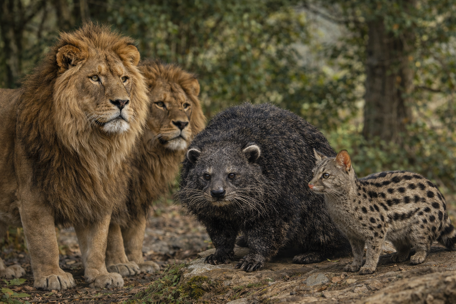 Löwe, Binturong und Ginsterkatze (ChatGPT)