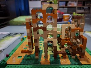 Nun a, wie beeindruckend der Palast am Ende ist liegt an den Spielern … und es wird jedes Mal anders aussehen. Aber das Legespiel (aus Legosteinen) ist durchaus unterhaltsam. Geeignet für Kinder ab 10 (wobei man das Kinder auch streichen kann, ab 10 Jahren geeignet und auch spaßig wenn man weit darüber hinaus ist).