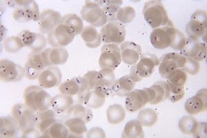 Die Diagnose: Zu den vor einer Therapie hilfreichen Informationen gehören Angaben zum Reiseland, zu einer bestehenden Prophylaxe sowie Vorerkrankungen. Die Diagnose Malaria sollte mit Hilfe labordiagnostischer Methoden zur parasitologischen Speziesdifferenzierung und Bestimmung der Parasitenzahl abgesichert werden. Die in der Praxis wichtigste und kostengünstigste Methode bei Malariaverdacht ist die mikroskopische Untersuchung von normalen Blutausstrichen (Dünner Tropfen) und dem bis zu 10-fach angereicherten Dicken Tropfen unter Verwendung der Giemsa-Färbung auf Plasmodien. Eine Differenzierung der vier Plasmodien ist anhand morphologischer Kriterien möglich (siehe Maurersche Fleckung oder Schüffnersche Tüpfelung). Die ermittelte Parasiten- und Leukozytenzahl ist ein Maß der Schwere der Erkrankung. Ein negatives Ergebnis der mikroskopischen Untersuchung kann aufgrund der geringen Sensitivität dieser Methode eine Malaria jedoch nicht ausschließen.