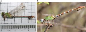 Paragomphus alami sp. nov. A. Male holotype (SNHM 1.582) from Jebel Aulia, Khartoum State, Sudan, collected 23 August 2019; B. Mature life male observed and photographed in the wild in Al-Sunt Forest, Khartoum State, Sudan, photographed 4 July 2022.