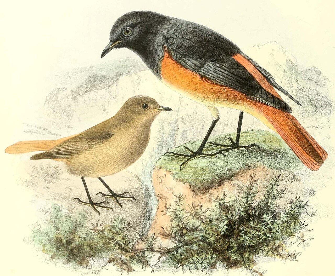 Phoenicurus ochruros rufiventris (John Gerrard Keulemans)